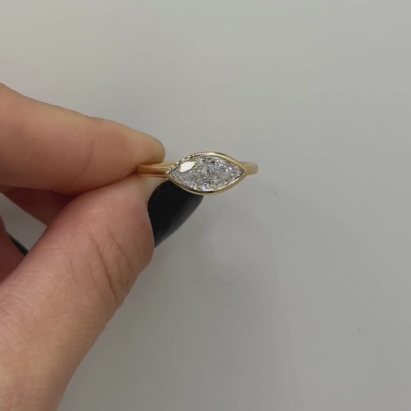 Derived from its ancient Greek origins, PHOEBE, embodies the essence of brightness. Our timeless PHOEBE ring, showcases a 1.5 crt marquise diamond elegantly set in a distinctive ribbed bezel design, all delicately crafted from 18KT yellow gold.