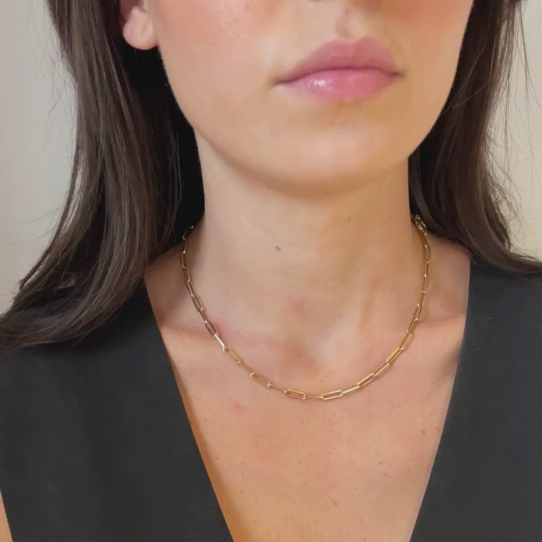 Elevate your style with GINNI, a one-of-a-kind Italian hollow paper clip chain. Crafted from exquisite 18KT yellow gold and fastened with a secure lobster clasp, GINNI embodies chicness.