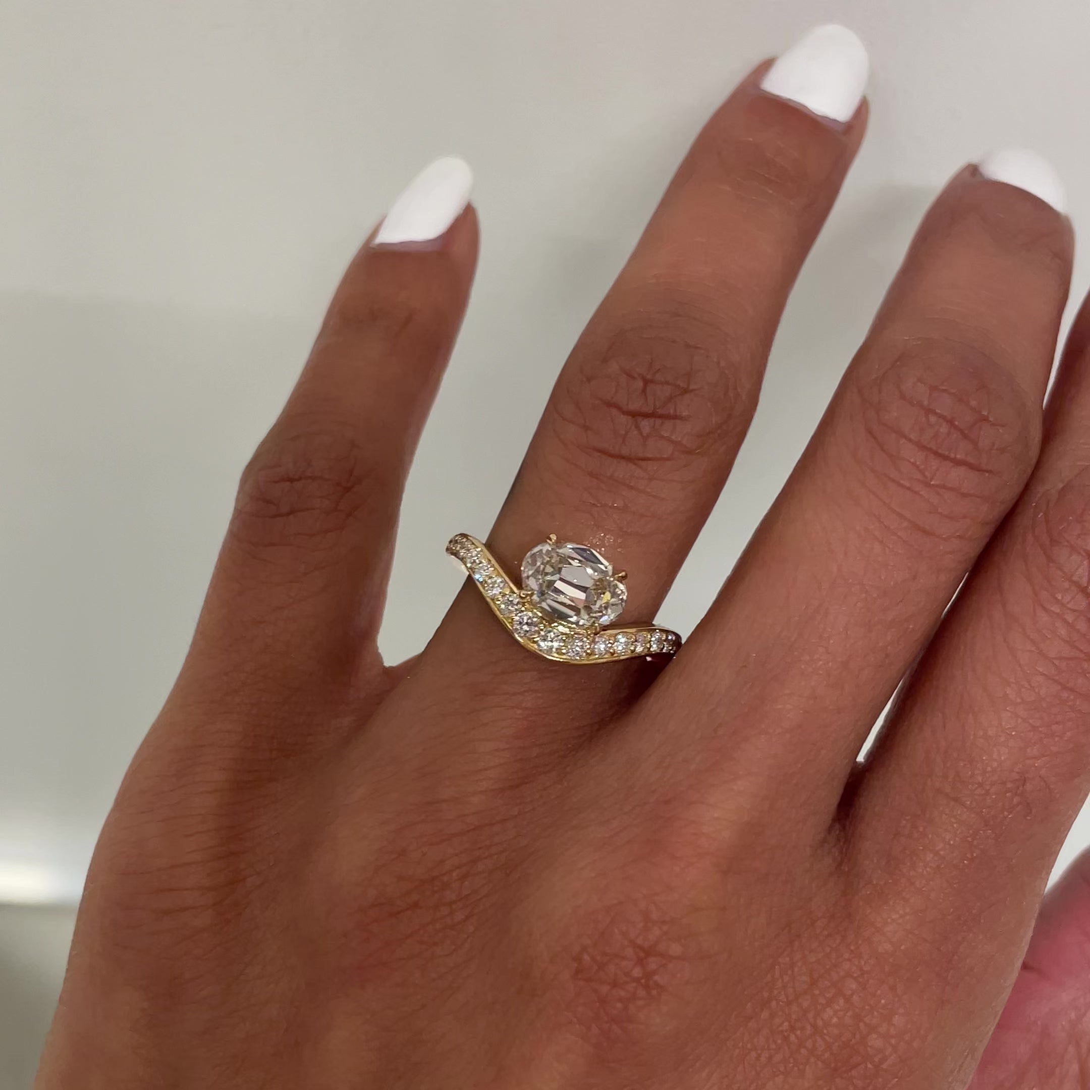 Diamond Info: Center diamond - 1.66 carat antique oval cut | Accent diamonds: ~ 0.40crt carat total of GH color VS clarity diamonds