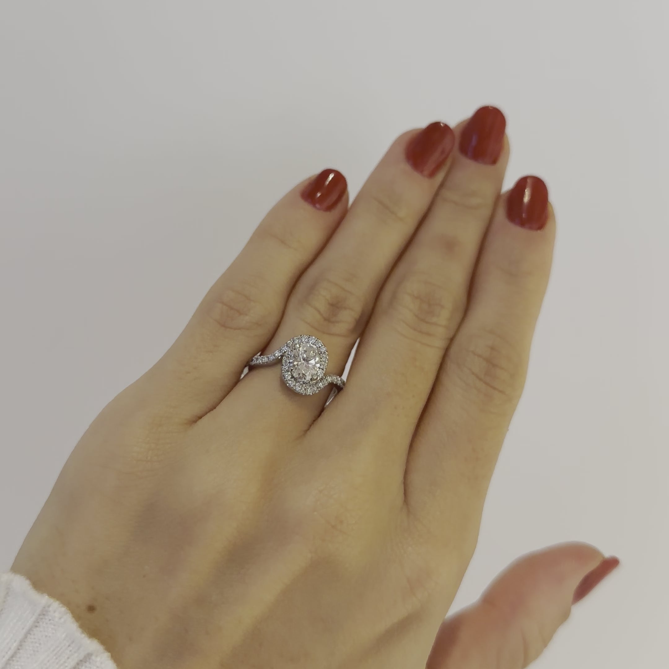 Celebrate new beginnings with our NYSSA ring, breathtakingly feminine but with a modern vibe. An oval diamond is surrounded by a diamond pave swirl set.