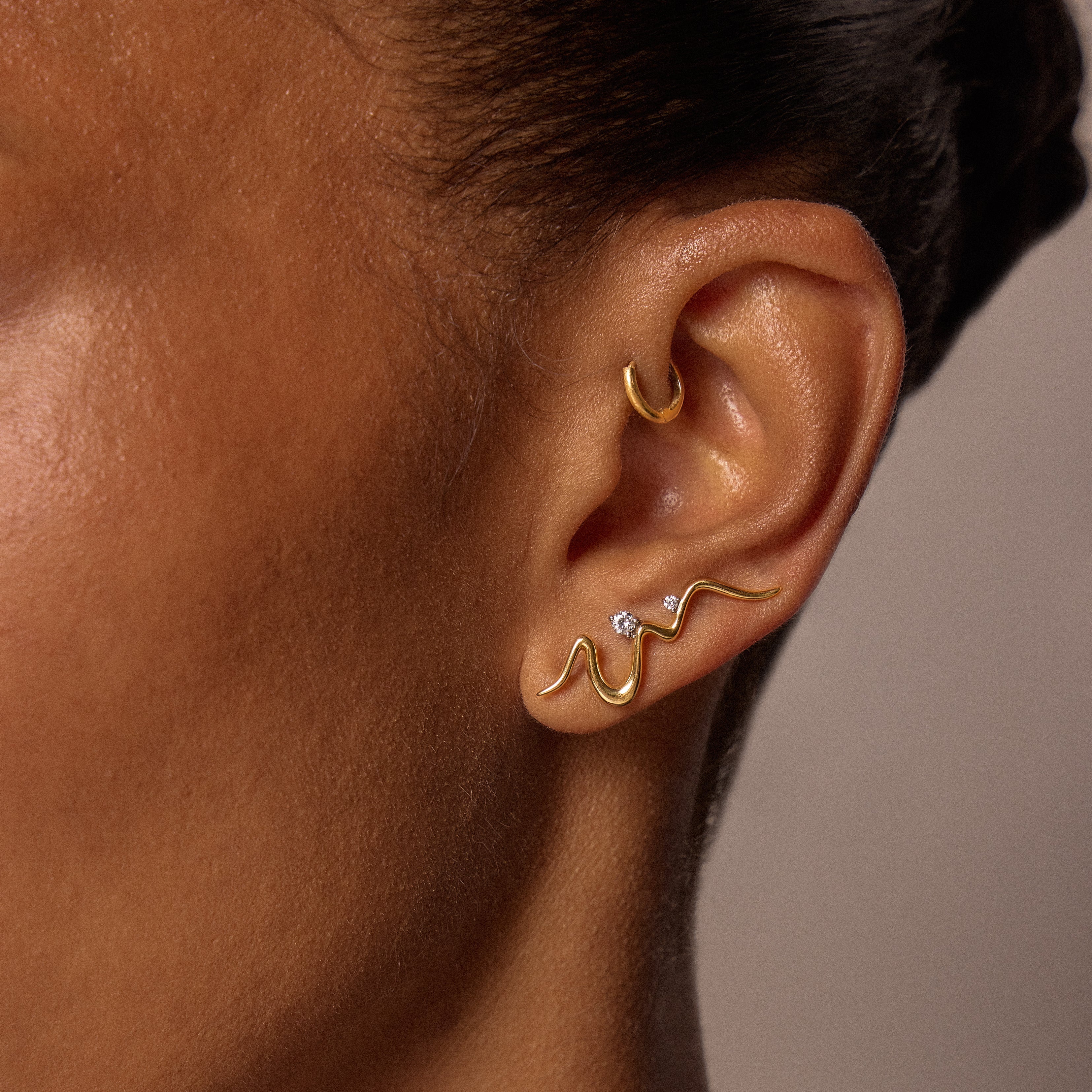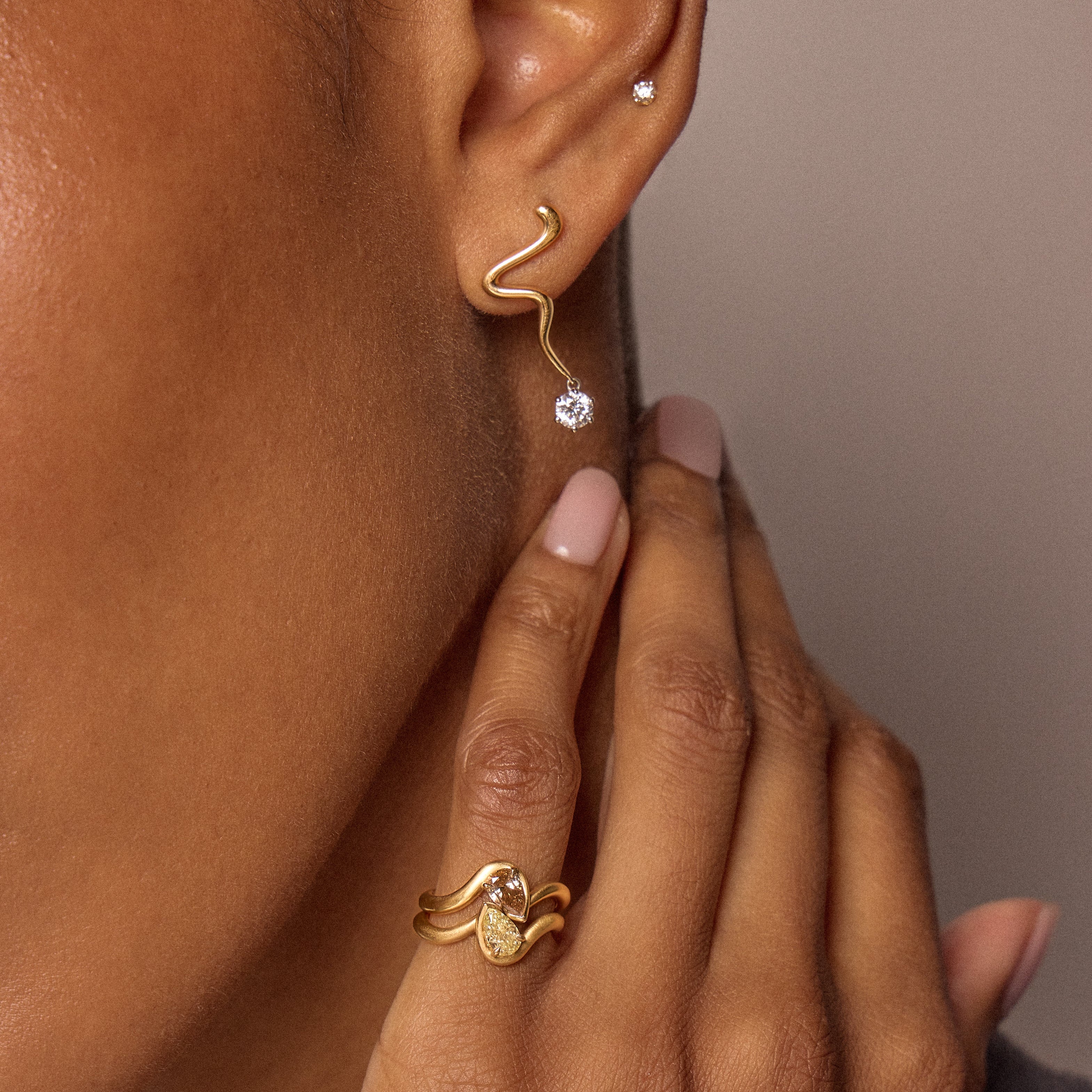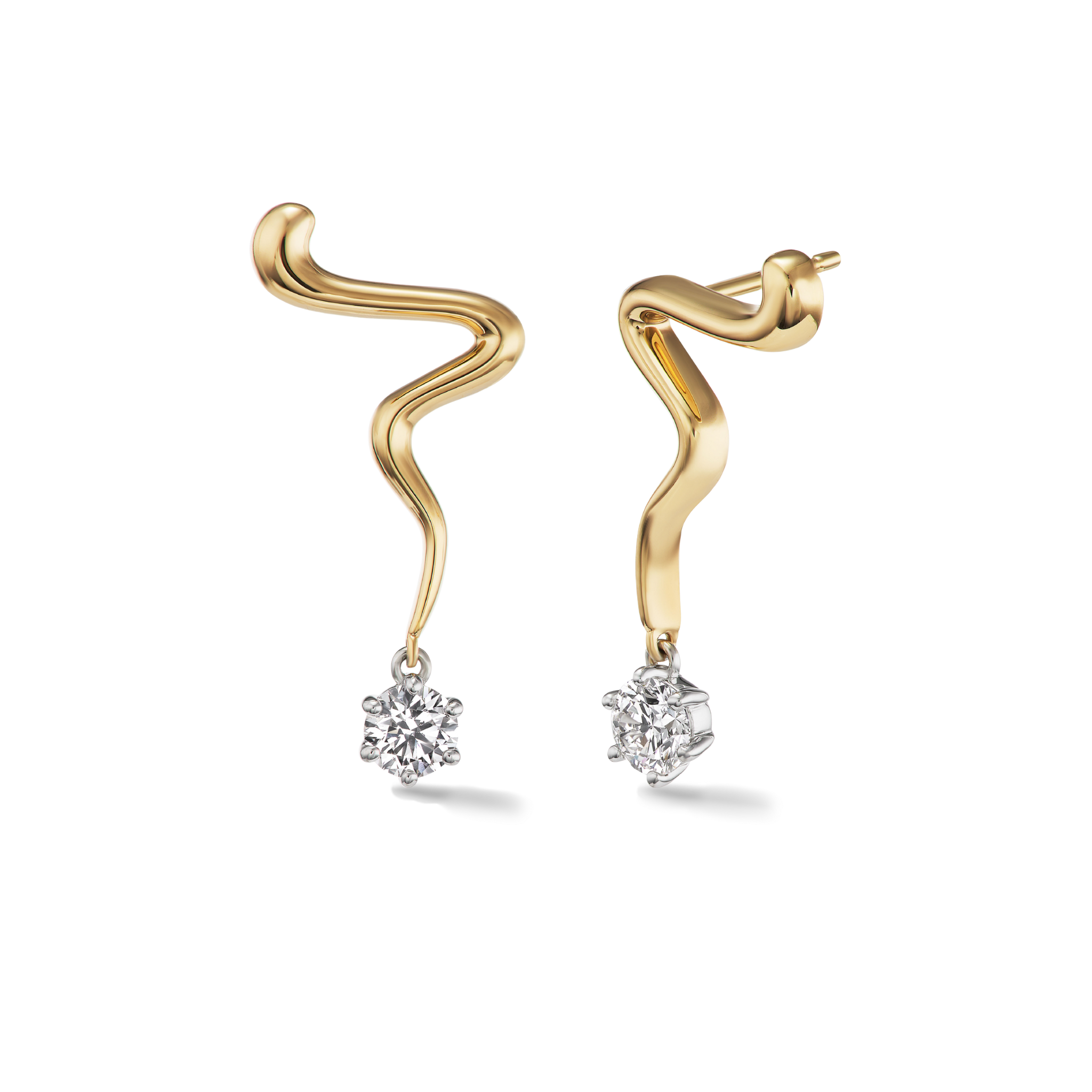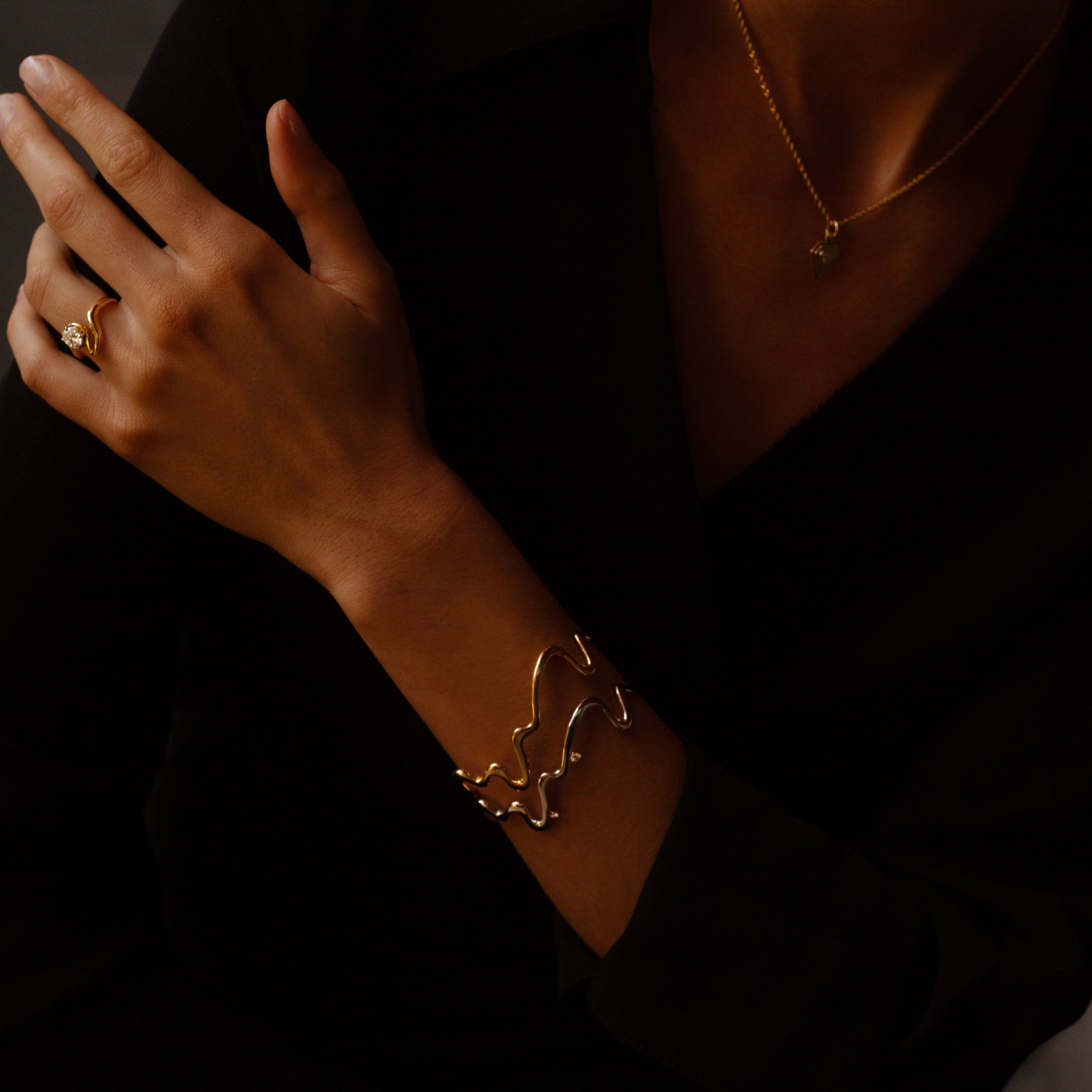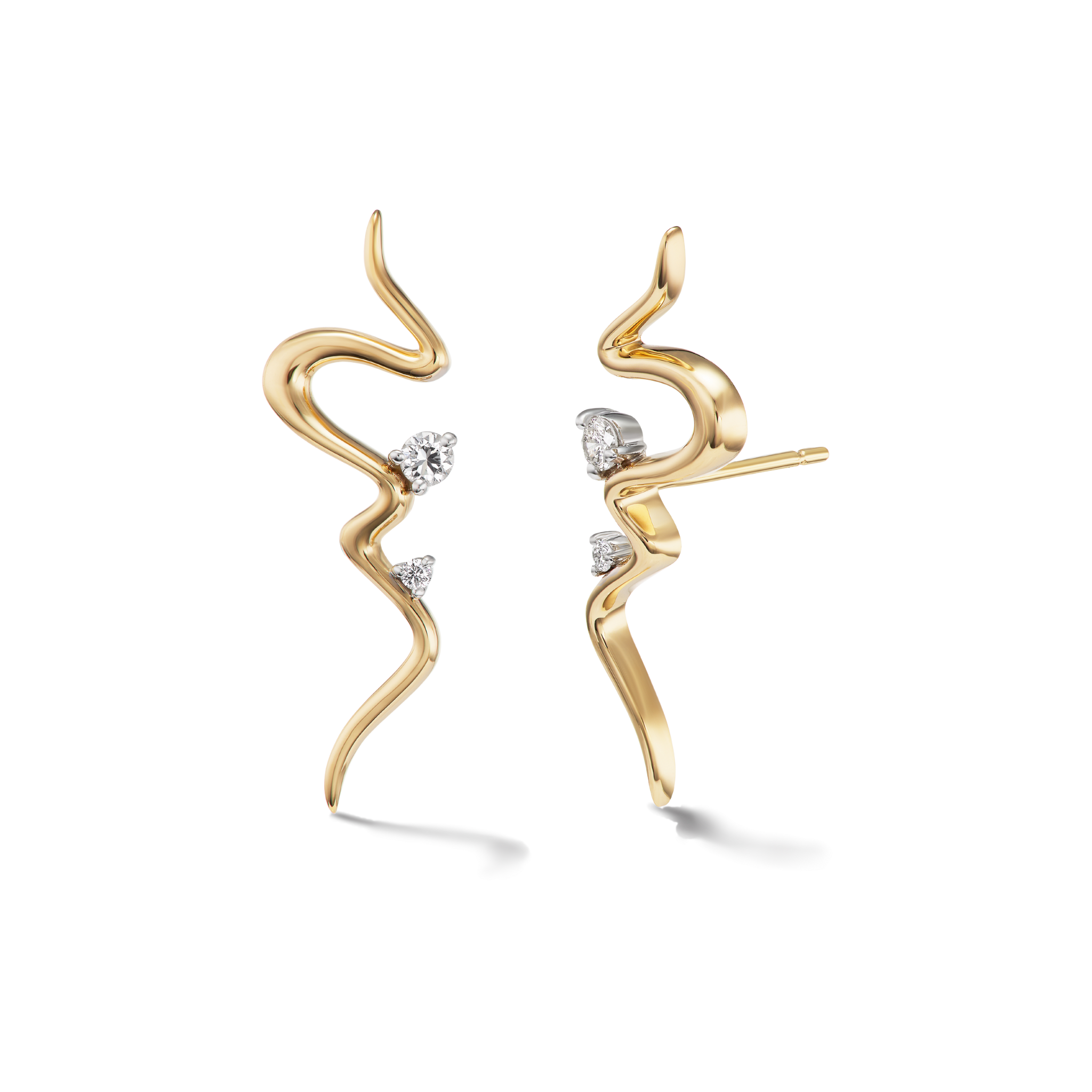 Fluid like waves, organic in form: the Squiggle Collection bends the rules of fine jewelry. Crafted in yellow and white gold with diamond accents, each cuff, earring, and necklace flows with sculptural ease, designed for women who move outside the lines.
