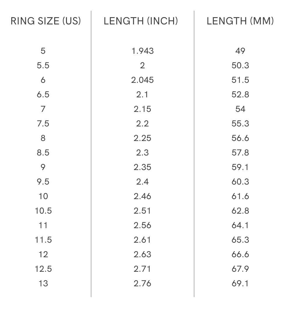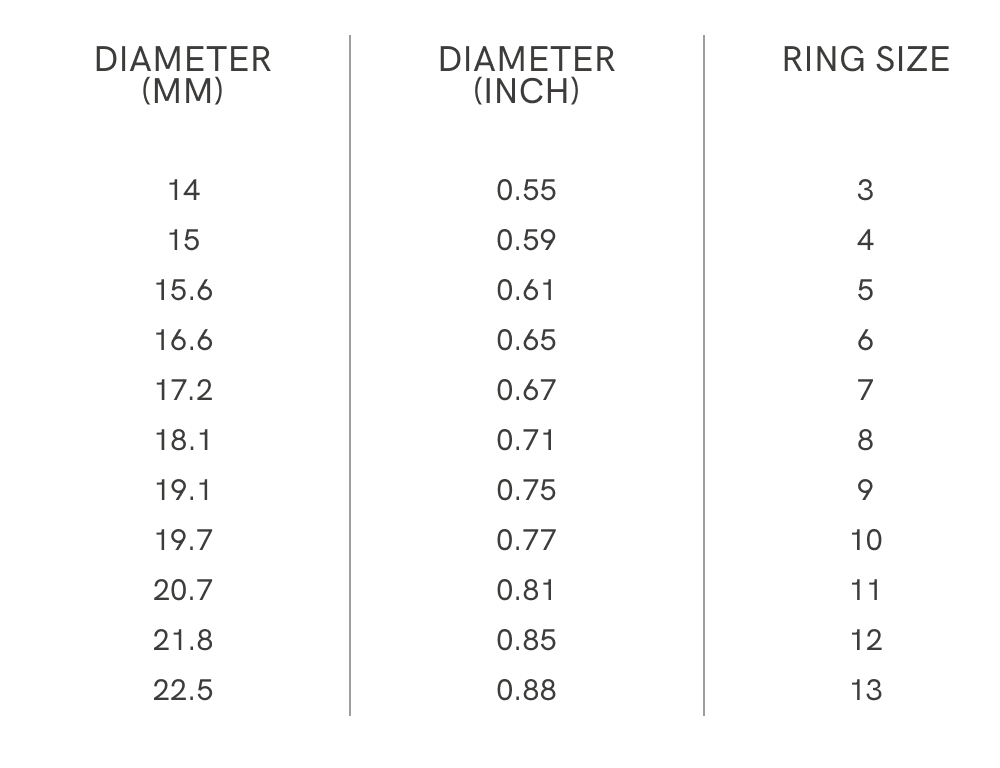 Use the conversion chart on the right to find your ring size.