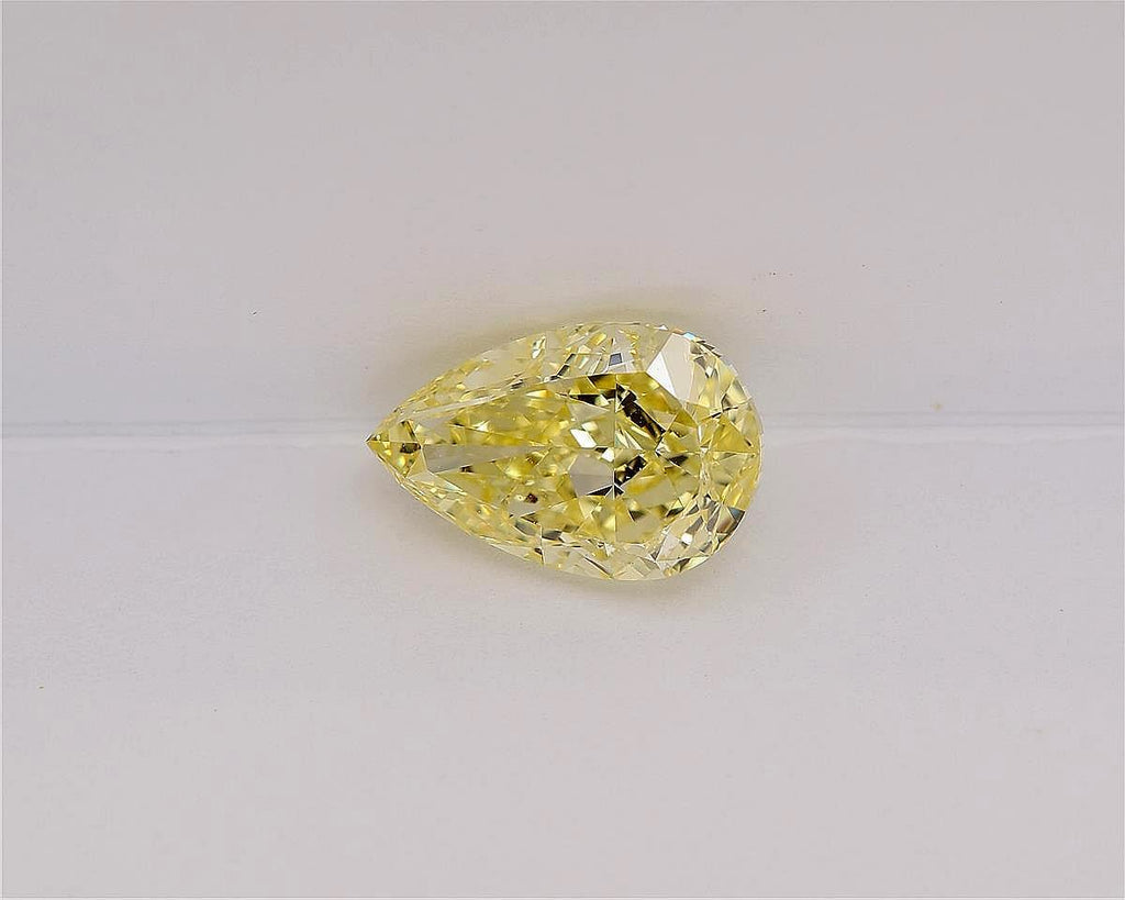 Vibrant and refined, this 3.09 crt Fancy Intense Yellow Pear Cut diamond radiates with golden fire. Its elegant teardrop silhouette captures and reflects light beautifully, balancing brilliance with graceful form. Graded VS1 clarity, it offers remarkable transparency and purity, allowing its vivid yellow hue to shine in full expression, a luminous diamond of rare sophistication.