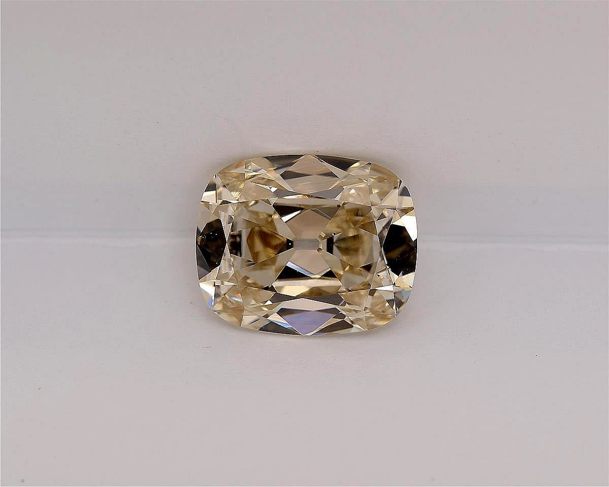 Warm and luminous, this 5.06 ct Fancy Light Brownish Yellow Cushion Brilliant Cut diamond radiates a golden glow with subtle depth. Its pillowed shape and open facets reflect light beautifully, while VS2 clarity ensures an eye-clean appearance. A diamond of refined warmth and rich tonal character, offering an elegant balance of color and brilliance.