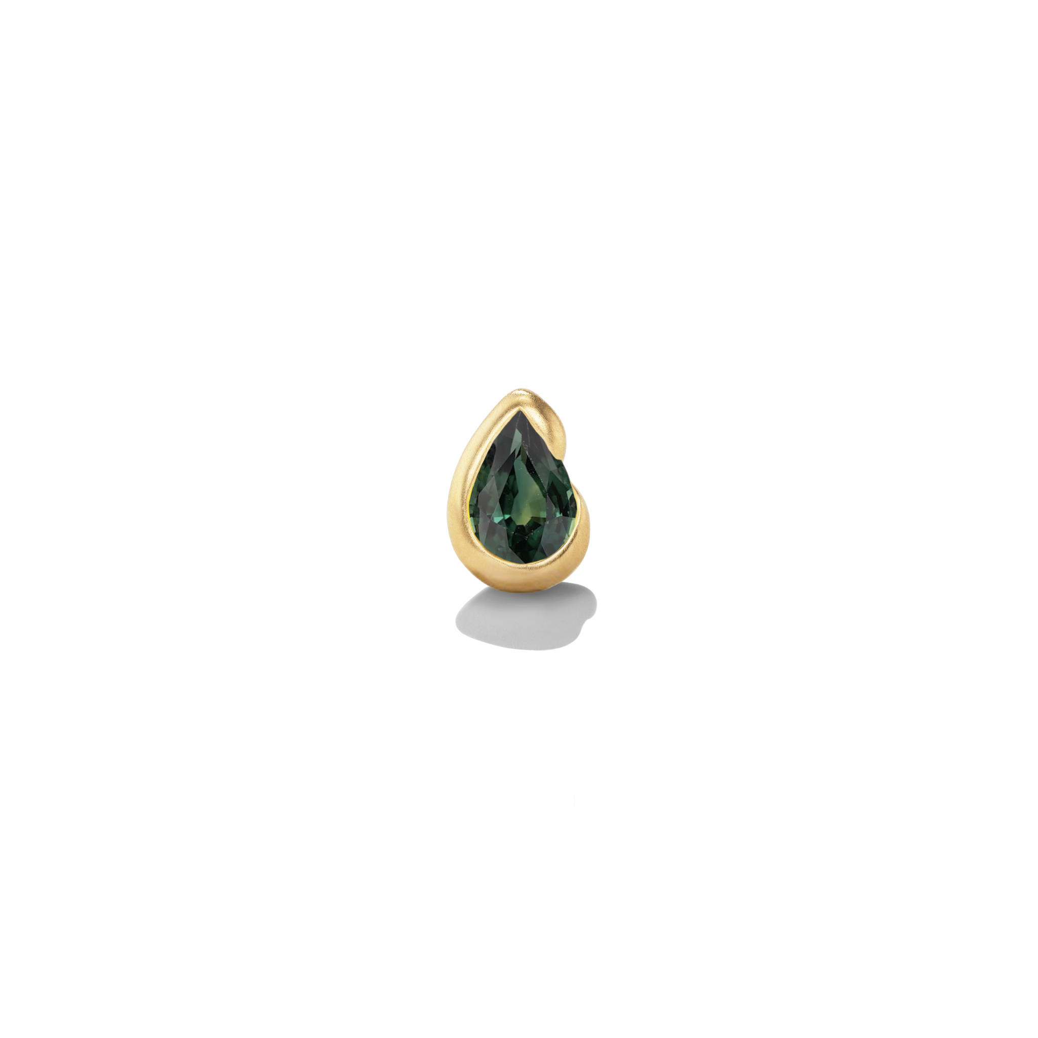Model wearing BB Thelma pinky ring stack in brown diamond, teal, and pink sapphire. Wearing BB Thelma Necklaces in yellow diamond and green tourmaline.