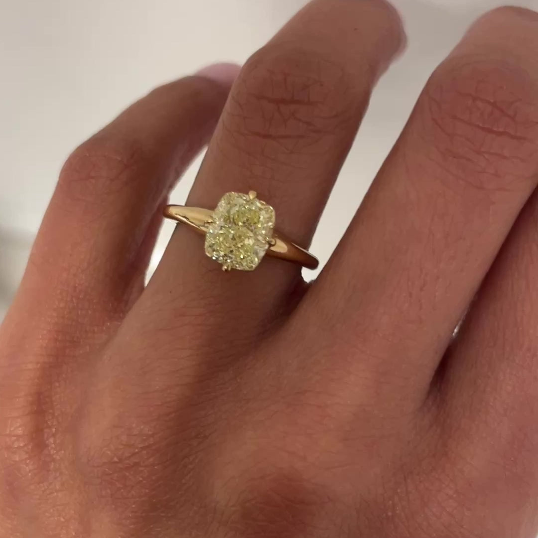 Classic MAE Ring with 2.3 fancy yellow diamond in a 18kt yellow gold setting